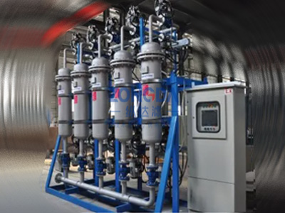 辅助反冲洗,即采用其它流体(气体、液体)辅助的方法来冲洗堆积的滤饼。反冲洗时,控制器切断过滤器的一组过滤组件进口和出口阀,然后打开辅助的流体进口阀,在其上游通入一定数量的经过净化处理的流体,当反冲压力达到流体的进口压力,迅速打开排污阀,出现一个液(气)压脉冲,瞬间将过滤元件外表面堆积的滤饼清除。然后关闭反冲流体进口阀、排污阀,然后打开原料进口、出口阀,恢复至正常过滤运转。按PLC的控制顺序逐组进行自动反冲洗,即当其中一组反冲洗时,其余仍在正常过滤运行。